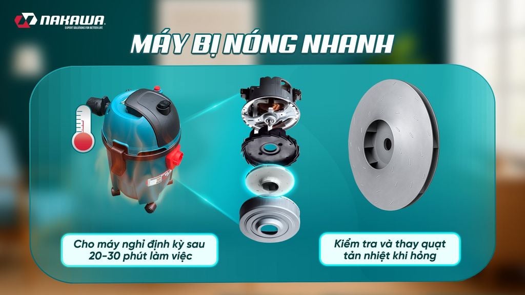 2. Lỗi máy hút bụi công nghiệp bị nóng nhanh