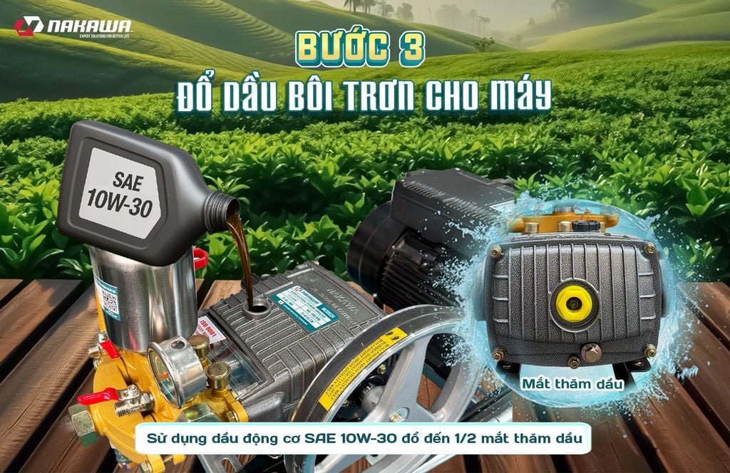3. Đổ dầu bôi trơn cho máy