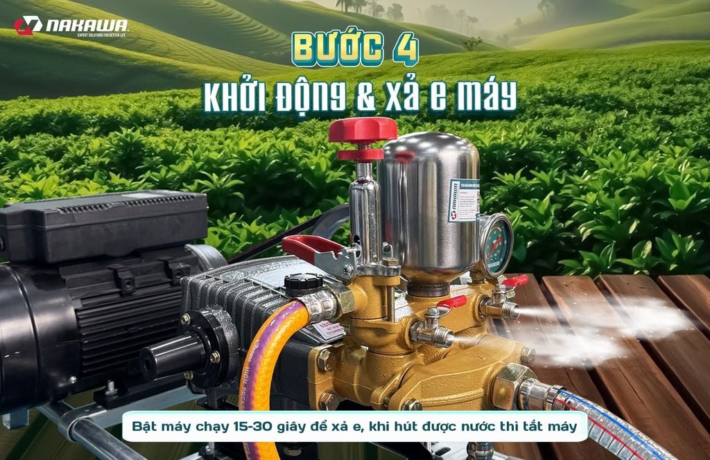 - Khởi động cho máy chạy 15–30 giây để xả hết không khí trong máy.