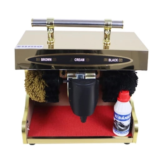 Máy đánh giày trang bị 2 chổi đánh bụi và 2 chổi đánh bóng (màu nâu và màu đen). Hộp đựng xi có dung tích 200ml sẽ được gắn vào vị trí giữa máy thuận tiện cho việc lấy xi.