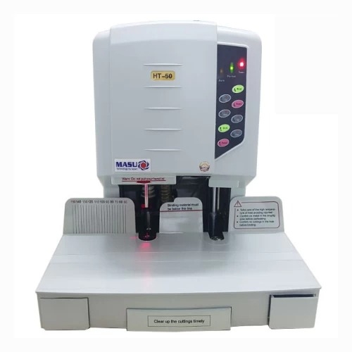 – Model máy đóng chứng từ MASU HT-50 NEW chuyên dụng cho việc khoan và đóng chứng từ dày đến 50mm với đường kính lỗ khoan 6mm, thích hợp dùng ống nhựa 5mm để cố định các loại giấy tờ, hồ sơ, sổ sách, tài liệu, chứng từ,...trong các công ty, doanh nghiệp kế toán, logistics, kho bạc, ngân hàng,...đảm bảo tính thẩm mỹ, gọn gàng của hồ sơ mà còn giúp việc lưu trữ thêm ngăn nắp.