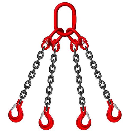 Sling xích cẩu hàng KENBO 5T4S1M gồm 4 sợi xích chịu lực được liên kết với các khóa nối và móc cẩu. Xích được làm từ thép hợp kim G80, có khả năng chống xoắn và chịu lực tốt. Nguyên lý hoạt động đơn giản, chỉ cần móc sling vào vật cần nâng và kết nối với thiết bị nâng hạ, sau đó tiến hành nâng hạ theo yêu cầu. Mỗi móc cẩu đều có chốt an toàn, giúp giữ vật chắc chắn trong suốt quá trình nâng hạ.